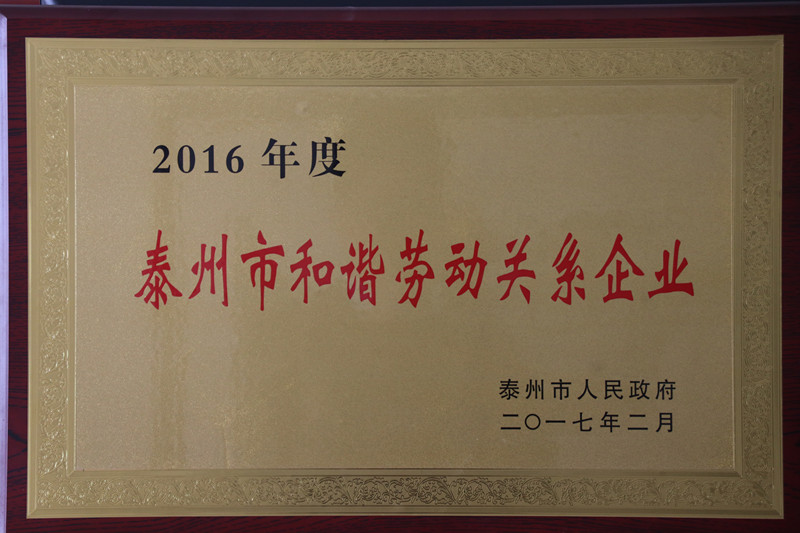 公司荣获“泰州市劳动关系和谐企业”称号2017-03-172017年3月,公司被泰州市创建和谐劳动关系企业活动领导小组办公室授予“泰州市劳动关系和谐企业”的称号。此项荣誉是对公司规范管理、依法用工、积极履行社会责任、保障职工合法权益等一系列卓有成效工作的充分肯定。 公司自2014年10月份成立以来,始终将员工的幸福、劳动关系的和谐作为一项重要工作常抓不懈。我们通过公告栏、座谈会等多种渠道,了解员工思想动态,解决员工实际困难,成功搭建了员工和公司的沟通桥梁